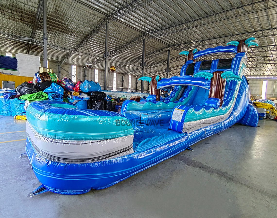 Make a splash with BounceWave's 18ft Cayman Crush Hybrid Dual Lane Inflatable Water Slide! This durable commercial-grade inflatable features:
