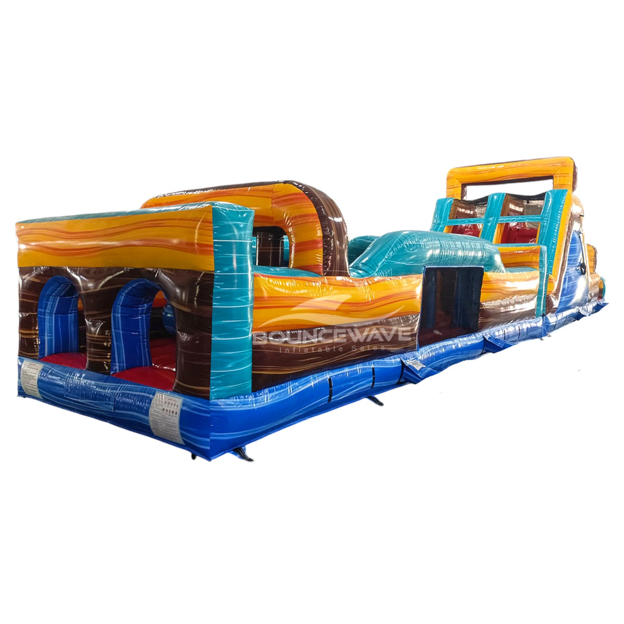 Challenge your customers with BounceWave's 62ft Tropic Shock 2-Piece Wet/Dry Inflatable Obstacle Course! This versatile commercial-grade 2-piece wet/dry unit features: