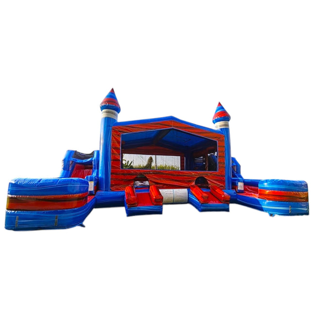 Maximize your rental potential with BounceWave's Baja Castle Epic Duo Bounce House with Slide (Wet/Dry)! This eye-catching commercial-grade Inflatable combo unit features: