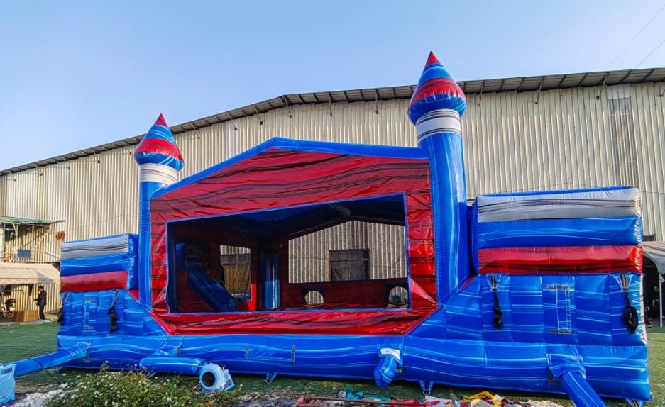BounceWave's 20+ years of industry expertise ensure top-quality products and unmatched customer support. Elevate your rental business with this Bounce House with Slide (Inflatable combo) that's proven to be a crowd-pleaser. Call (888) 901-9283 for pricing and custom options.