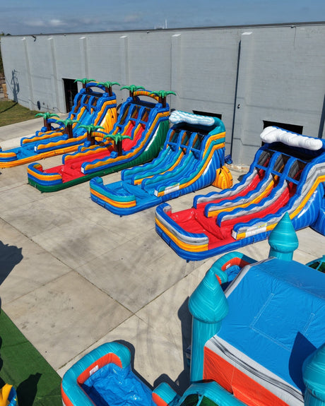BounceWave's sale collection features discounted commercial inflatables across all product categories, water slides, bounce houses, wet/dry combos, obstacle courses, interactive games, and accessories. Every unit is ASTM F2374-22 certified, triple-stitched, and built for 150+ annual rentals. Sale inventory is limited and rotates regularly. Financing available on all orders $1,000 and above.