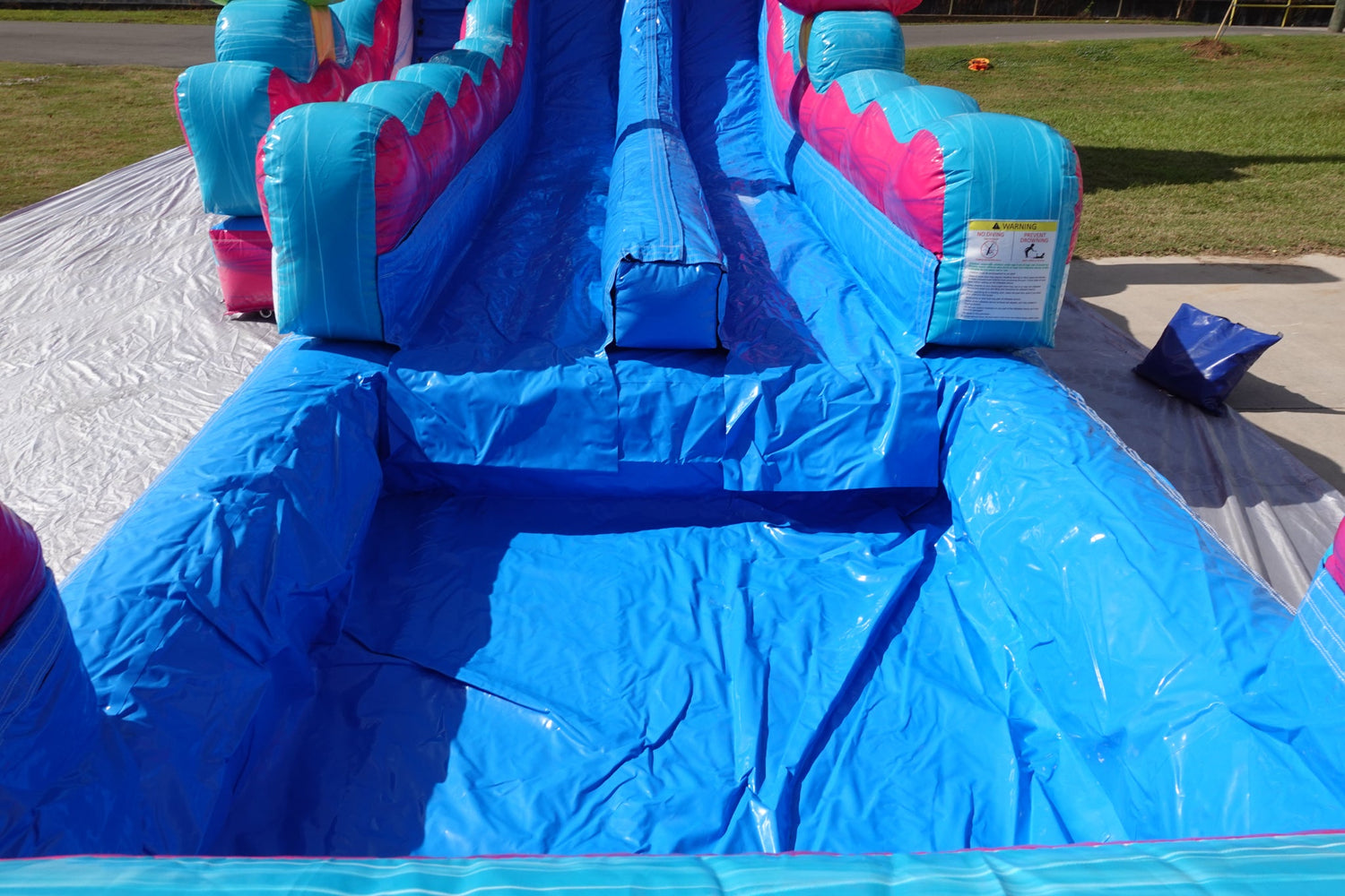 The 18ft Freeze Pop Falls Dual Lane Hybrid Water Slide is built to dominate your rental season. With its bold Freeze Pop theme and BounceWave’s signature Hybrid design, this inflatable delivers the perfect mix of eye-catching curb appeal, faster setup, and record-breaking ROI.