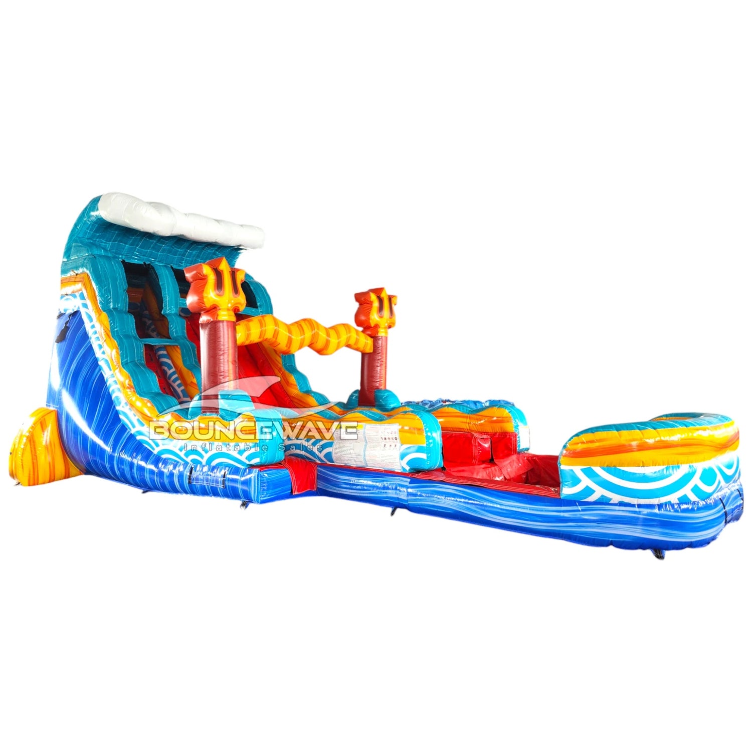 Unleash mythical thrills with BounceWave's 18ft Poseidon Plunge Hybrid Dual Lane Inflatable Water Slide! Features: