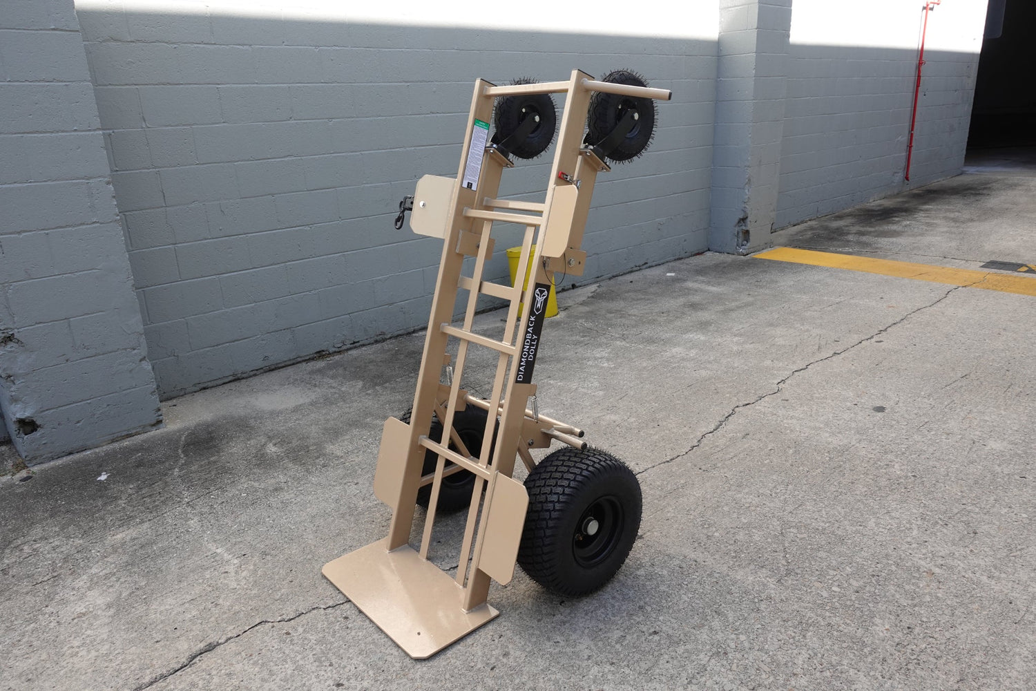 Upgrade your heavy-lifting game with this revolutionary dolly. Save time and effort on every job. Experience the convenience of easy transport and firm tire chocking with the extended foot brake. Call (888) 901-9283 for pricing and options on this must-have heavy duty hand truck dolly.