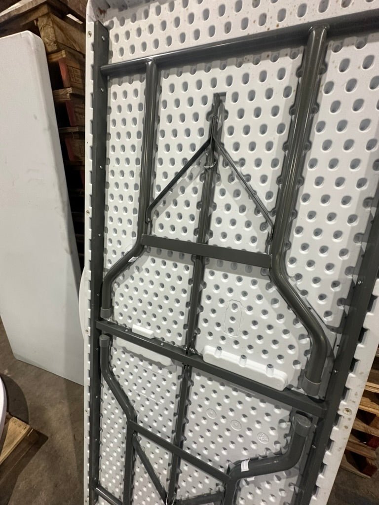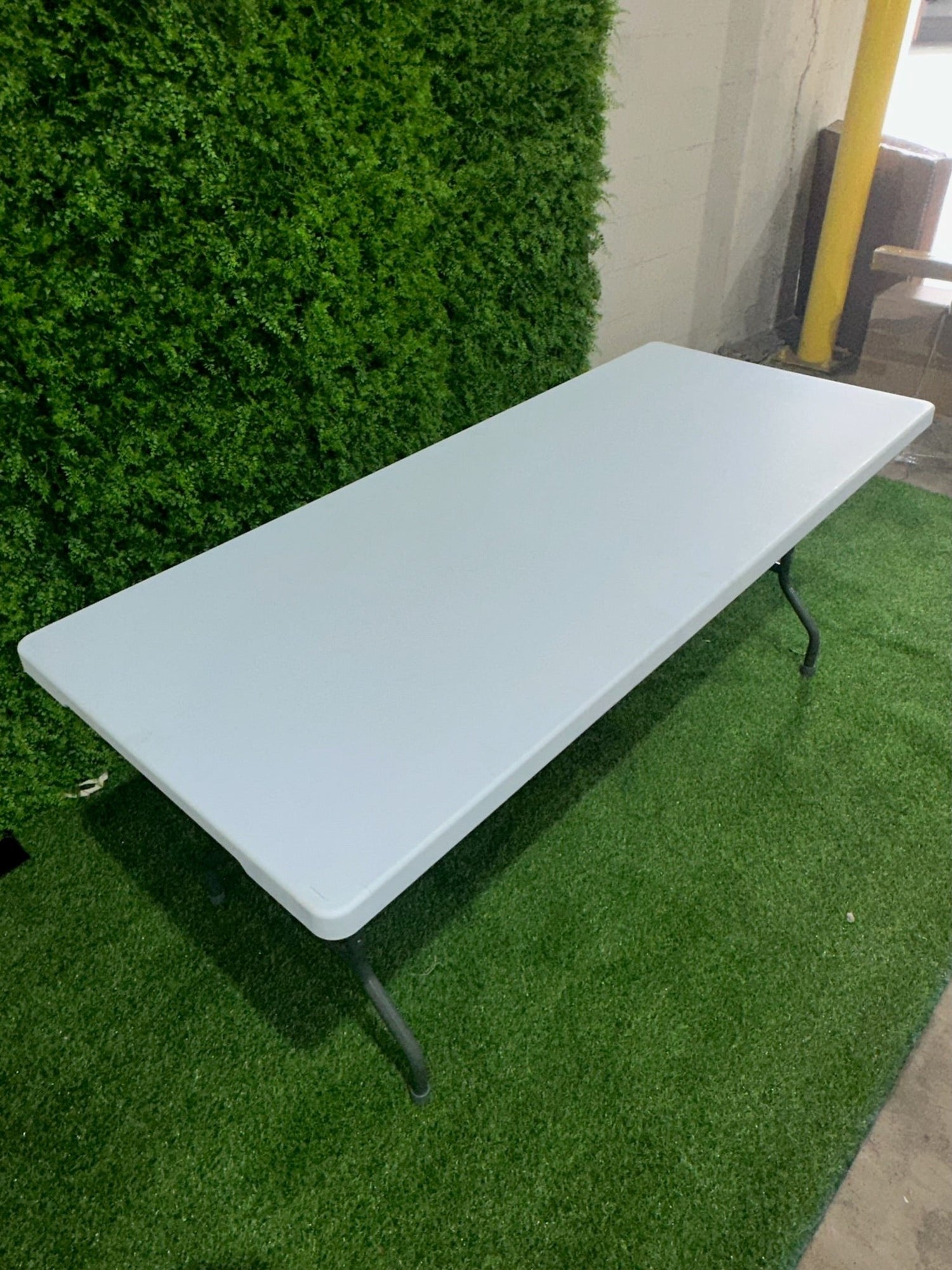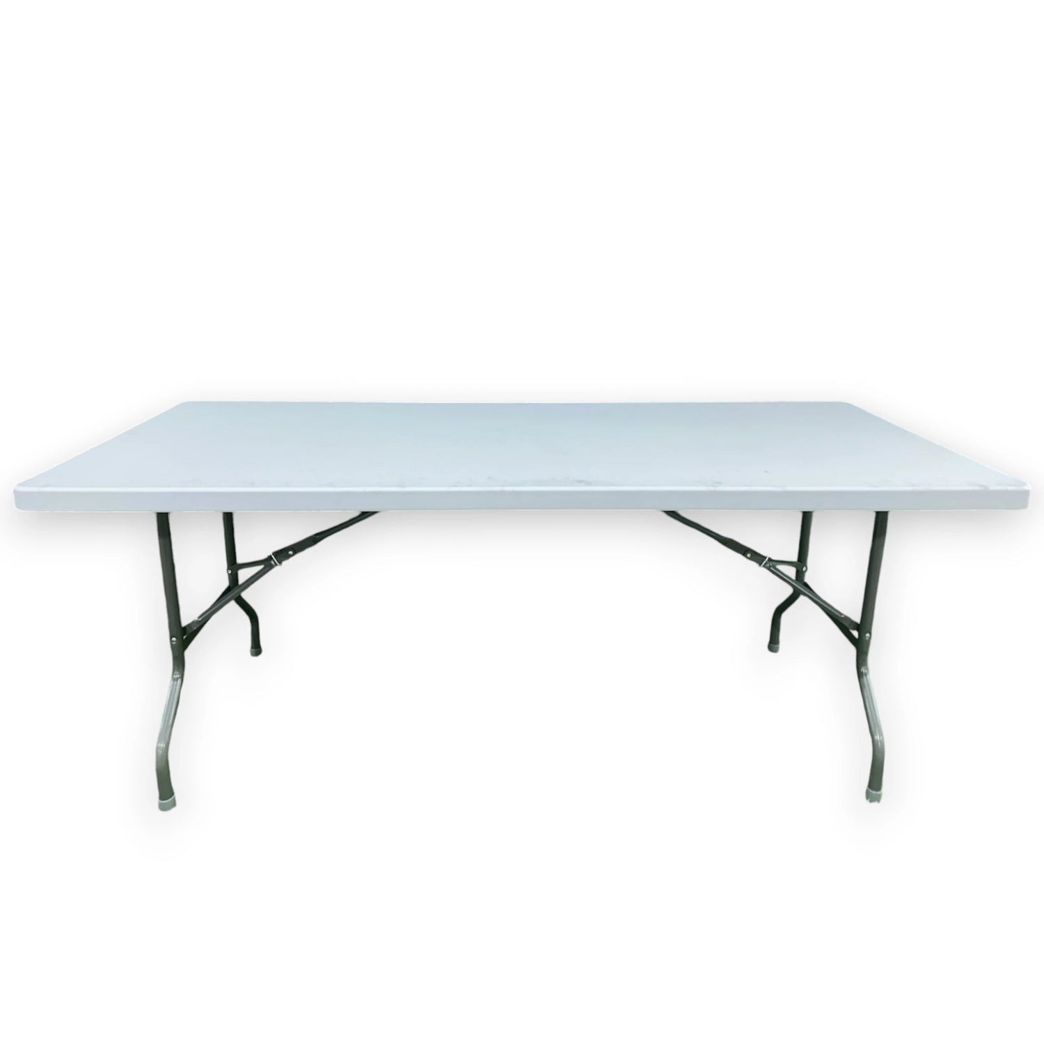 Our professional grade, heavy-duty plastic folding banquet tables are made to last, simply because they are constructed of the highest grade materials in the industry. These 8ft long rectangular tables comfortably sit 8-10 people. The granite white top is blow molded and constructed of high-impact polyethylene, making them stain resistant and water proof. Additionally, the powder coated legs with protective floor caps feature gravity locking mechanisms making for a quick set up and take down. These heavy duty legs seamlessly fold underneath for easy storage and transport. Suited for indoor AND outdoor use, you won't find a better table at a price like this anywhere else.