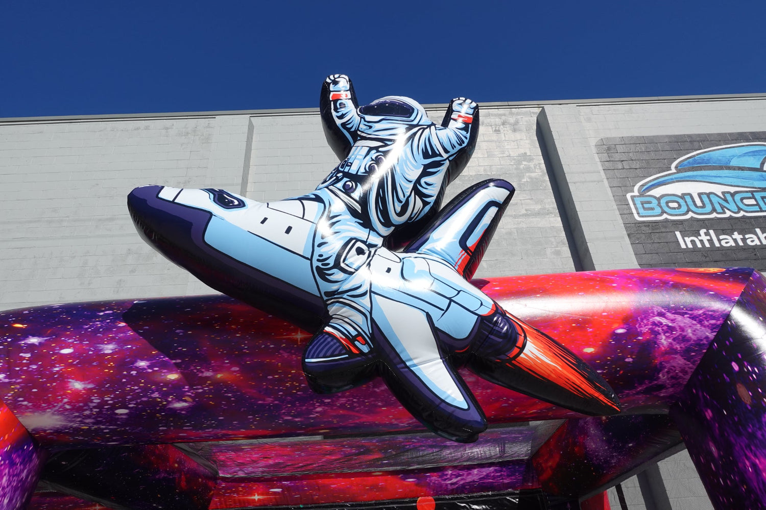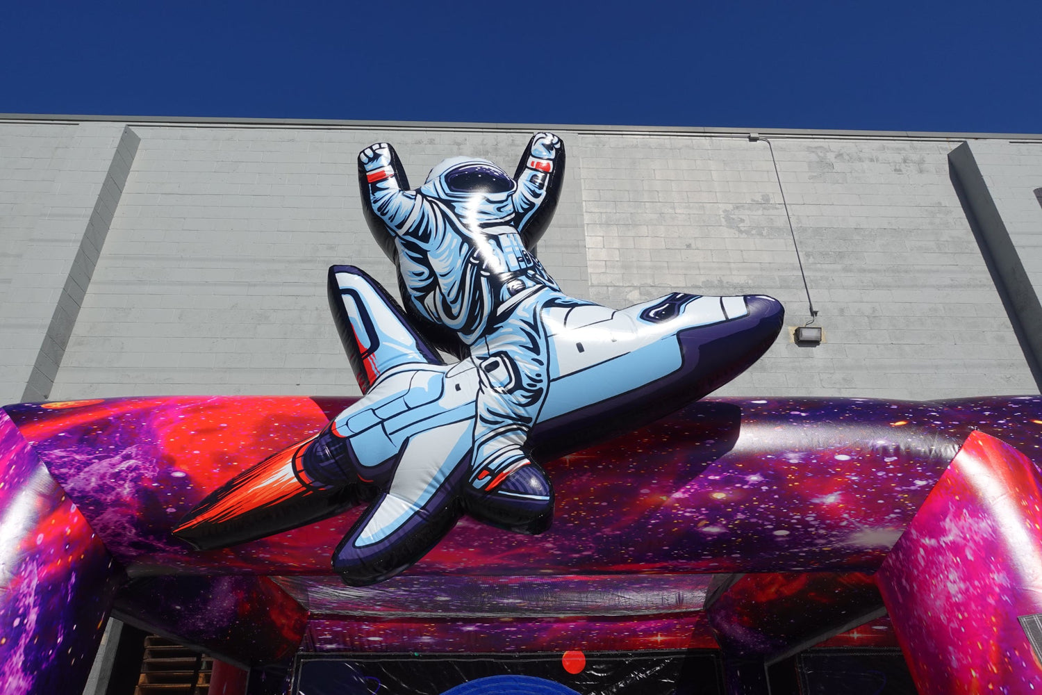 Eye-catching cosmic galaxy print and 3D astronauts riding rockets deliver an unforgettable visual impact that attracts attention from any event.